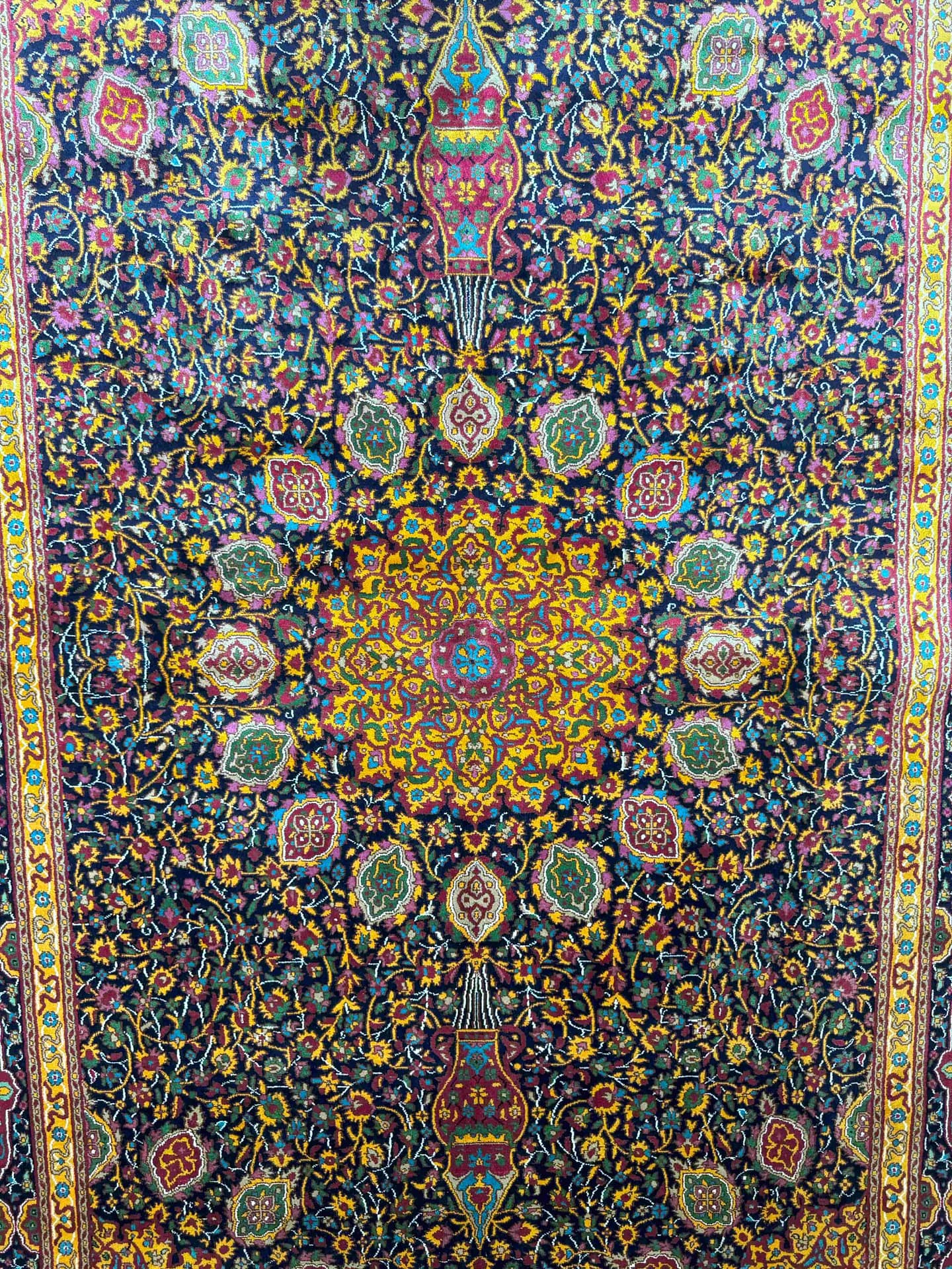 A silk carpet is a luxurious and finely crafted rug made primarily or entirely from silk fibers. Silk, a natural protein fiber highly prized for its softness, sheen, and ability to take on rich, vibrant colors. Carpets made from silk are considered some of the most luxurious and exquisite floor coverings due to the following characteristics:
