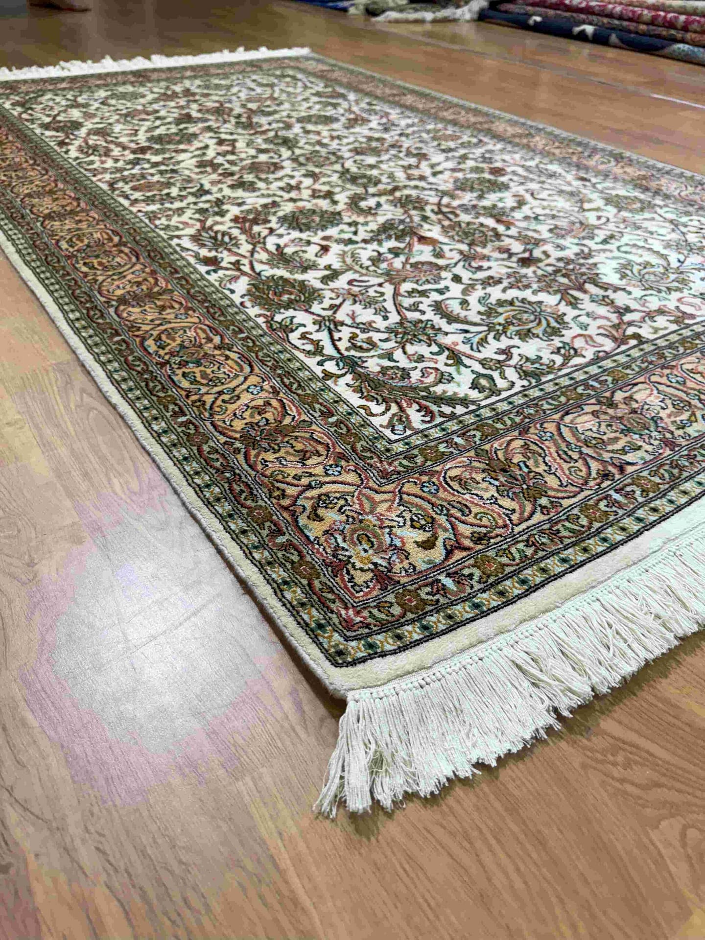 1. Material: The primary material used in a silk carpet is silk, often obtained from silkworms. The use of silk gives the carpet a smooth, soft texture and a natural sheen that is highly desirable.
